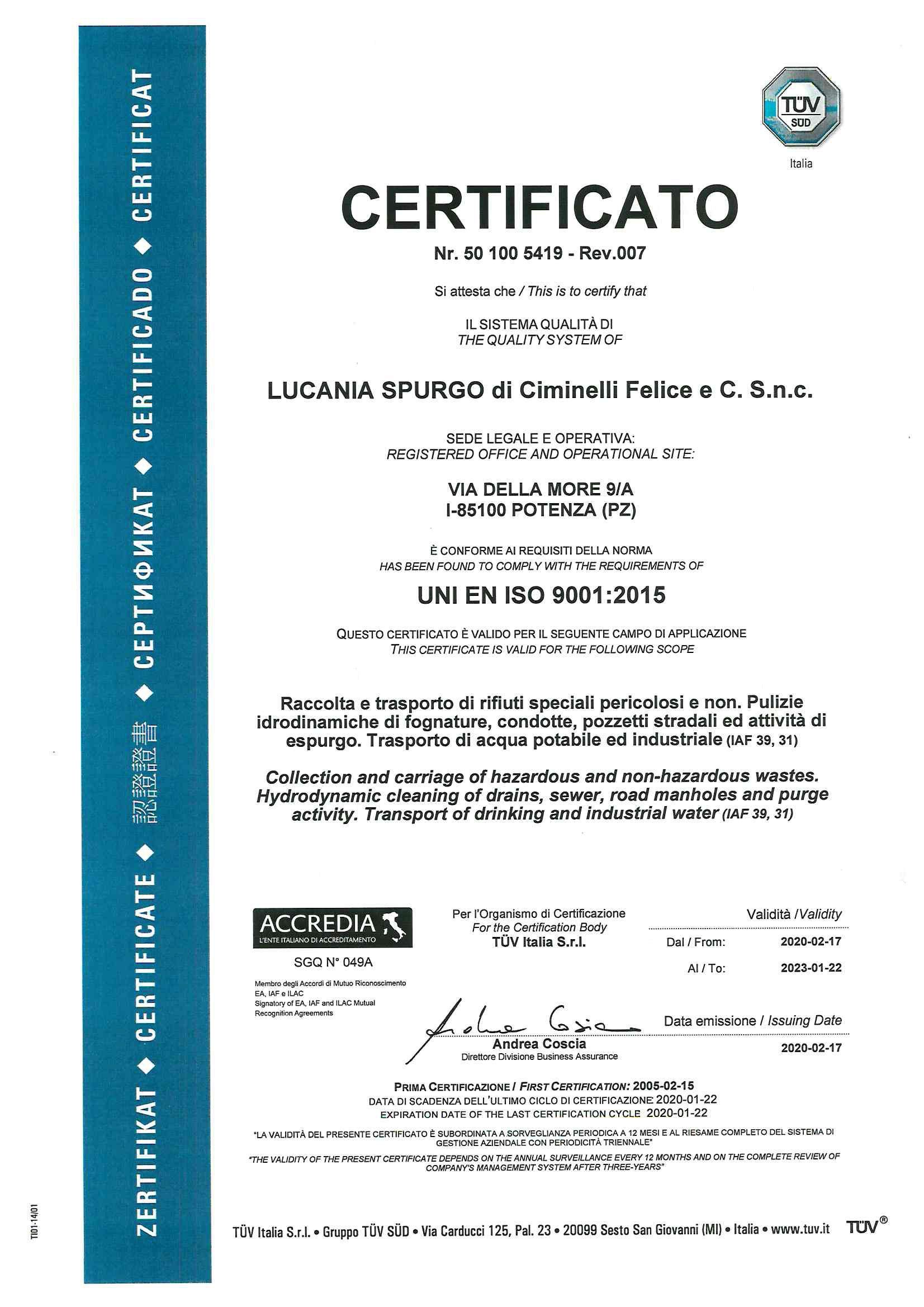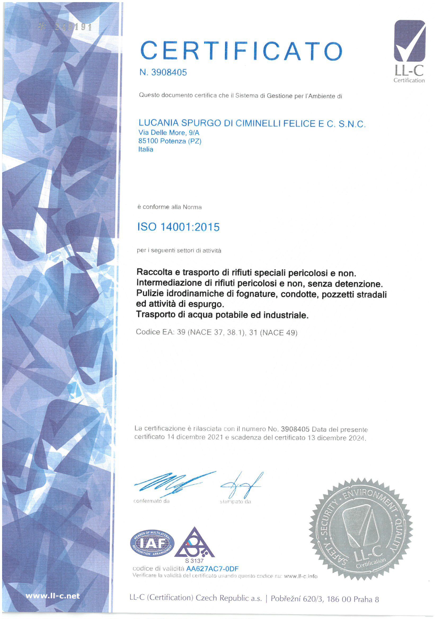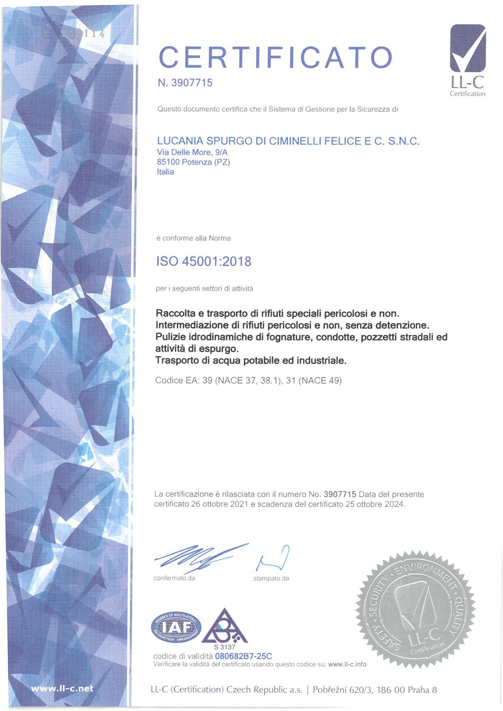 CERTIFICAZIONI : UNI EN ISO 9001:2015 - 14001-2015 ISO 45001-2018
